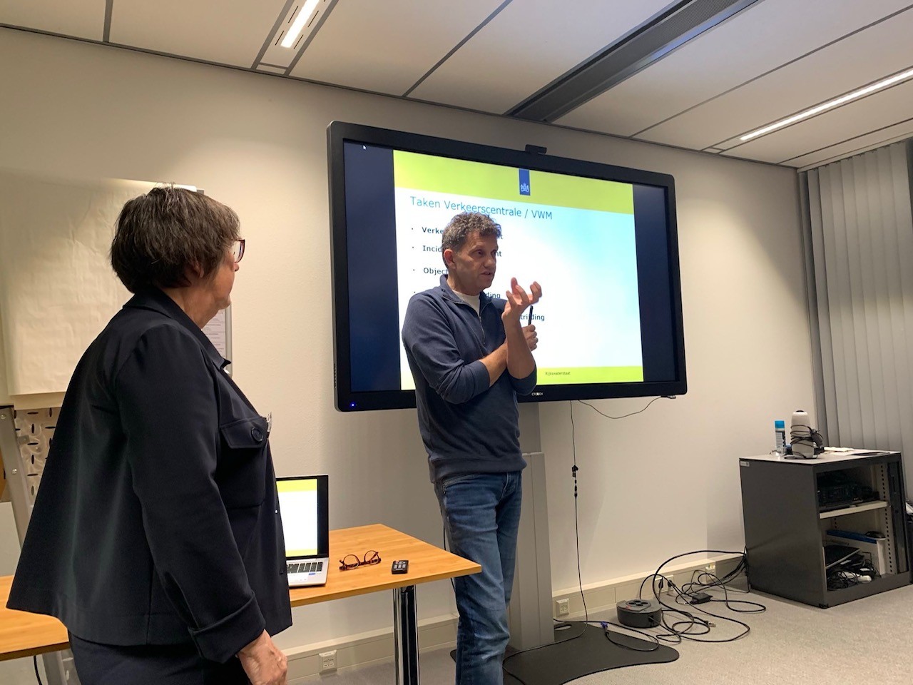 We namen een kijkje in de indrukwekkende centrale met alle desks en beelden van de wegen en tunnels die 24/7 bekeken worden door de wegverkeersleiders. Ook al gaat er veel automatisch door bijvoorbeeld sensoren in het wegdek, veel acties worden toch nog handmatig door hen in gang gezet. Zoals de matrixborden boven de weg of het veiligstellen van een wegdeel. Ook bij pech-en ongevallen komen ze in actie. Er zijn korte lijntjes met de politie, met aannemers over bijvoorbeeld het repareren van kapot wegdek en met gemeenten.